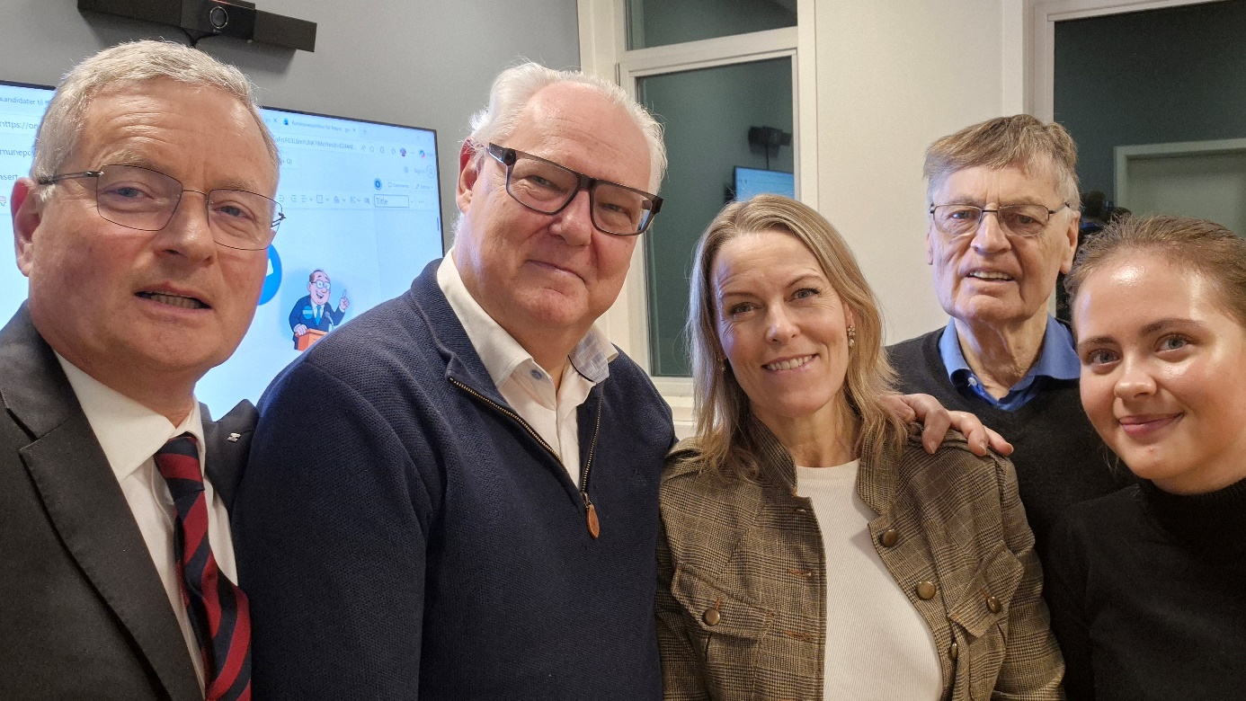 Fra venstre: Knut Oppegaard (leder), Lars Henrik Bøhler (Senior Høyre), Pia Tryland, Kjell Opheim, Sofia Bjerkeli Bjørge (Unge Høyre)